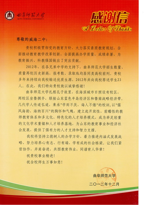 ◇◇◇ 您现在的位置: 山东省威海市第二中学校园网 >> 文章中心 >> 教务管理 >> 招生考试 >> 正文